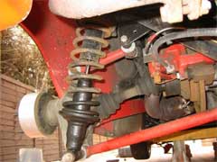 With the calliper, hub, spring and damper removed, the lower spring platform can now be accessed for modification.