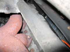 Manifold to downpipe joint – note the exhaust paste that has been squeezed out of the joint.
