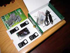The TyreSure comes with all you need, other than a tyre fitter, to fit the system. The Box has the wireless Receiver and Display unit, two squares of Velcro for fixing, Power connection for Cigarette Lighter, 4 wireless transmitter sensor, 4 tyre valves, 5 screws and one comprehensive manual. You can also purchase a windshield holder if you prefer.