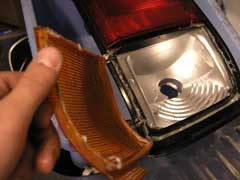 1. First remove the rear light clusters. 2. Then you need a bucket large enough to dip the clusters in, and a kettle to boil some water. Heat up some water, (dont boil it you will only risk damaging the light clusters and burning your self) and pour it into the bucket, then place the light cluster into the hot water and let it sit in the water for a few minutes. This will make the glue used to mount the amber indicator lens soft.