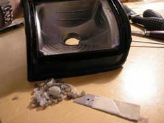 4. After having succesfully removed the old lense you need to take away the old glue, i found it easier to wait a few minutes untill the glue was hard again and then i used a very sharp razorblade and simply cut it away.