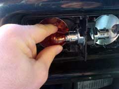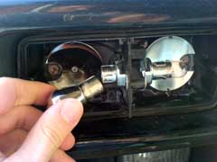These are our orange bulbs from the original conversion we did. If you've not done it before, you'll have a clear bulb. Twist and pull out the indicator bulb and replace with your choice of bulb.