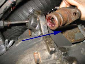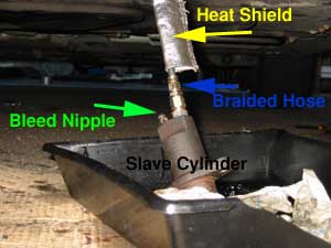 When you remove the cylinder, the bar and rubber seal will come away. You can now undo the hose (slowly) and bleed the system of Clutch fluid (remember this fluid will damage paint work, so be careful). If you are doing only the Slave Cylinder then you won't need to fully bleed the system, but I would recommend it, to replace with fresh clutch fluid.
