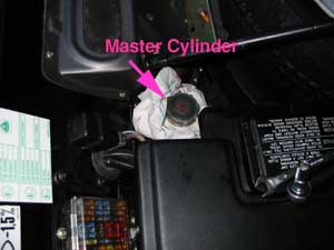 Removing the Master Cylinder is a little more involved than the Slave. The Master Cylinder is situated under the front bonnet of the car and is next to the ABS under the plastic cover and the brake master cylinder. You'll see the clutch hose coming up from the bottom of the car and attaching to the cylinder.