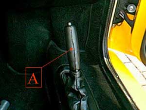 Using a sharpe knife (stanley or scaple), cut along the length of the handbrake sleeve as per A, remove sleeve (shown in pic 2).