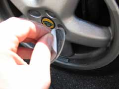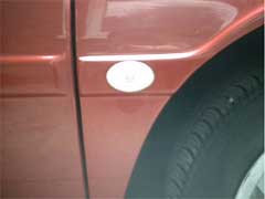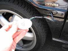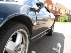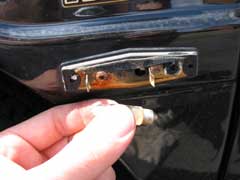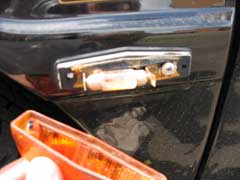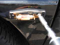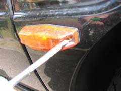 You can now give the surrounding area a bit of a clean and polish. The marks from the old indicator need cleaning off. The new indicator is attached by a 3M pad, so you can attach it without having to cut accurate holes for clips, or drill holes for screws. Once the backing's peeled off, you can attach the lenses to the holder. All you do then is push the wire back through and line up the lens, before pushing it into place.