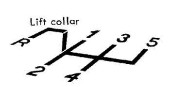 The gearchange lever is spring biased towards the 3rd/4th gear plane, and must be moved against light spring pressure to the left before selecting 1st or 2nd gear, and against similar pressure to the right to select 5th gear. The selection of reverse gear is inhibited by a plate at the base of the gear lever, above which a stop end pad must be raised by lifting a collar beneath the gear knob.
