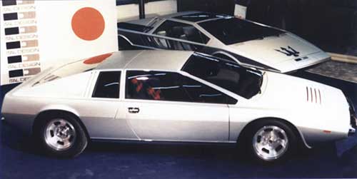 Above Image: The Maserati Boomerang (in the rear) and the prototype M70 Lotus Esprit (in the foreground).