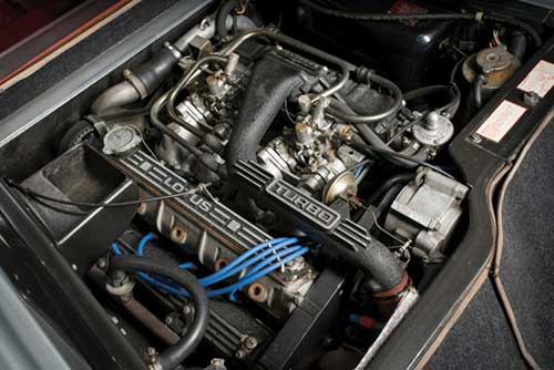 For the Esprit Turbo the High Compression engine was fitted from 1985 with a compression ratio of 8.0:1, Mahle pistons, and turbo boost upped to 9.4 psi (.65 bar). The engine breathed through larger Dell’Orto DHLA 45M carburetors. The effect of this was to lift power to 215 hp @ 6250 rpm with torque increased to 220 lb/ft @ 4250 rpm.