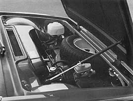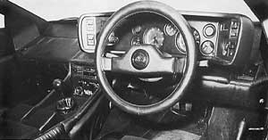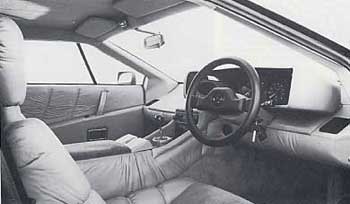 The success of this car, and the almost universal praise for its engineering, behaviour and detail fittings, all go to prove that at this price a customer is more interested in the right specification than in mundane practicality. If he is not in the Turbo Esprit price class, he simply would not appreciate that the extrovert good looks also have a functional effect on the cars aerodynamics, but he would appreciate the intercooling effect of the finned manifolding from turbocharger to carburettor plenum chamber, the remarkable grip and handling and the excellent lie-down driving position. And if he were a Turbo Esprit enthusiast, he would make sure that he never went kerb-hopping to cause punctures anyway. The squashy-looking interior of an early Esprit Turbo, with the basic instrument and control layout unchanged.