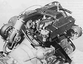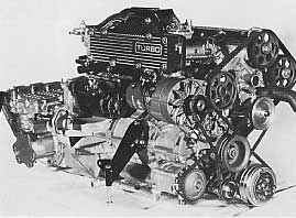 Compared with the bodyshell on normal Esprits of the period, there were many obvious changes and additions, mostly made for good aerodynamic reasons. The main shape and structure was unchanged, but differences were obvious from all angles. At the front, there was a larger wrap-round bumper allied to a deep new spoiler. There were matching skirts along the sides, under the doors, complete with NACA-type ducts moulded in to direct cooling air towards the engine compartment. At the rear there was a sizeable and completely functional spoiler above the tail-lamps and number-plate, a large bumper matching the front component and extra skirting under the tail. Above the engine bay, instead of glass there was Venetian-blind-style black louvring. In addition, not only to make the styling even more distinctive, but to optimize the roadholding, there were 1 5in diameter alloy road wheels of a new style, with 7in front and 8in rear rims and Goodyear NCT tyres. Most Turbos have been sold on BBs wheels, but a few early cars were supplied with three-piece Compomotive rims instead. To produce the new Type 910 engine Lotus redesigned the Type 907 from end to end, and the final product differs in almost every detail from normally-aspirated Type 911 (Talbot Sunbeam-Lotus) and Type 912 (S2.2 Lotus) units. The finalized engine had its Garrett AiResearch turbocharger mounted above the clutch bellhousing, behind the cylinder block, and boosted inlet air to the Dellorto carburettors to a peak of 8psi above atmospheric pressure. To compensate for this, and to optimize all settings, the nominal compression was reduced to 7.5:1 (from 9.4:1) and there was a different camshaft profile. A feature not always noticed by the pundits was the dry-sump lubrication system.
