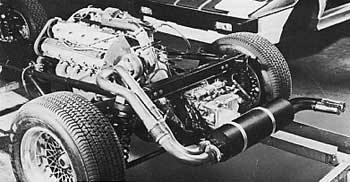 Lotus own press material stresses the scope and nature of the new cars development: ... this new addition to our model range is not an Esprit with a bolt-on Turbo pack, but a fully developed and redesigned motor car in its own right. So much of the car was new, indeed, that it would probably be easier to list what was not changed, modified or improved. For a start, there was a new design of backbone frame, prepared not only because Lotus wanted to provide an altogether more integrated structure than before, and to accommodate a new rear suspension, but also because they wanted to leave enough space for the still-secret V8 unit to be fitted one day. Lotus made no secret of the existence of a large-capacity V8 engine in their development programme, which explain6 why the engine bay of the new frame was wider and the general layout so much more sturdy.
