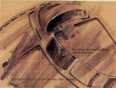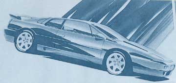 "I didn't do weeks and weeks of sketch work. This kind of car needs to be an immediate statement which is then refined. I wasn't groping for a solution, so nothing would have been gained by drawing 50 or 60 totally different cars. All of us here have a good idea of how a Lotus should look, so that gave us a start. A lot of discussion took place before I produced the renderings, so the early drawings look very close to the finished car."
