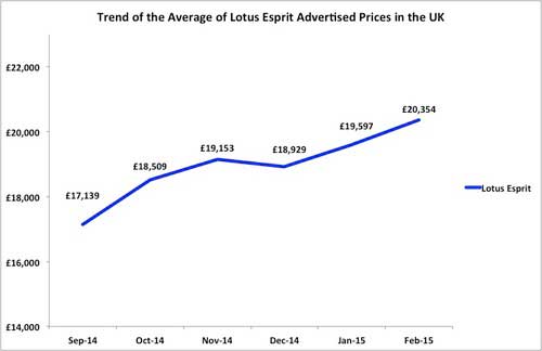 Lotus Esprit Average Advertised Prices in the UK. Source: Patina Trends Database