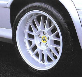 The new "crystal titanium" finish multi spoke OZ Racing alloy wheels hide powerful 4-pot calipers with an advanced Kelsey Hayes ABS system. Large 320mm diameter AP Racing two piece brake discs are vented and cross-drilled, front and rear, for maximum cooling and heat dissipation when the car is subjected to sustained heavy braking. The race specification calipers, pads and discs ensure that the Esprit stops as well as it goes.