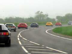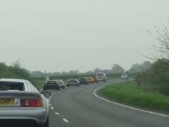 A spirited drive back to the Melting Pot Public House saw the group fragmented into many small groups. Above right, Rob E takes the racing line a little too far!