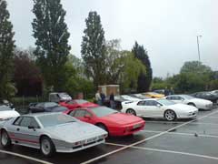 The first meeting point was at Peartree Services on the A34 near Oxford! LEW was there first, closely followed by Brian & Geoff in the Lotus Engineering's V8. A wet horrible day greeted us, but Esprits continued to roll in and by 10am we had around 30 Esprits!