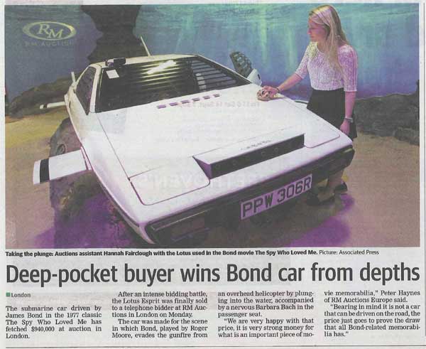In had previously been auctioned as a blind lot in 1989.Peter Haynes, from the auction house, said: "Bearing in mind it is not a car that can be driven on the road, the price just goes to prove the draw that all Bond-related memorabilia has.
