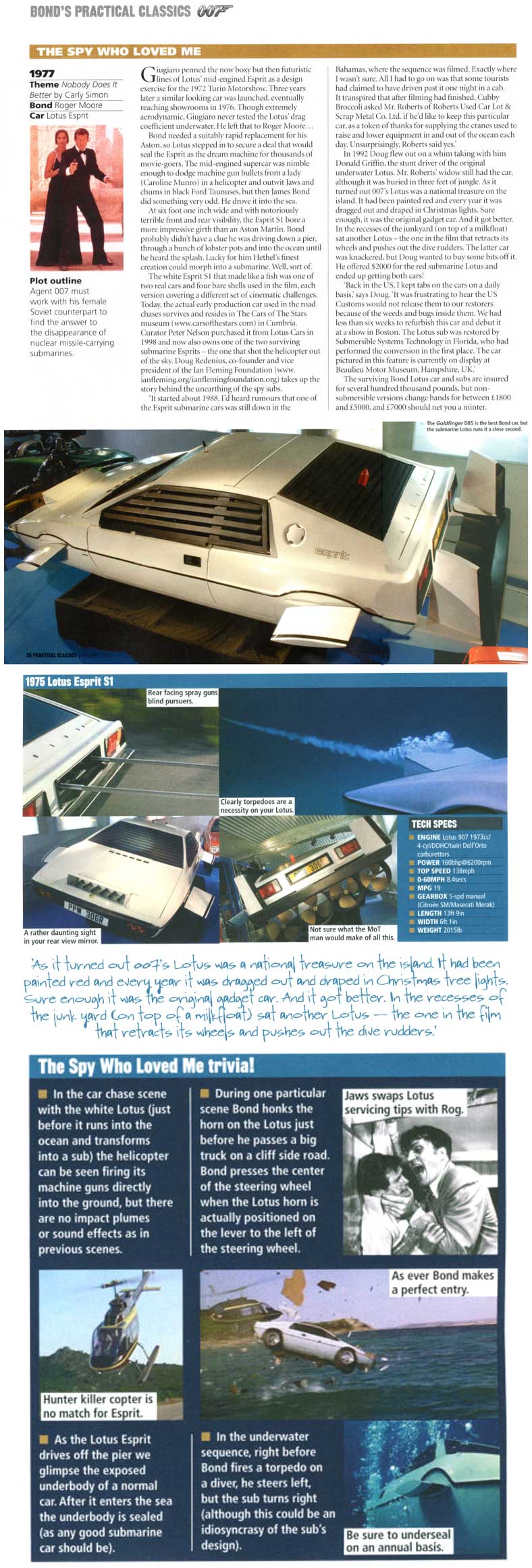 Bond's Practical Classics Just for James Bond, the Lotus Esprit goes submarine. Practical Classics Magazine, Jan 2007