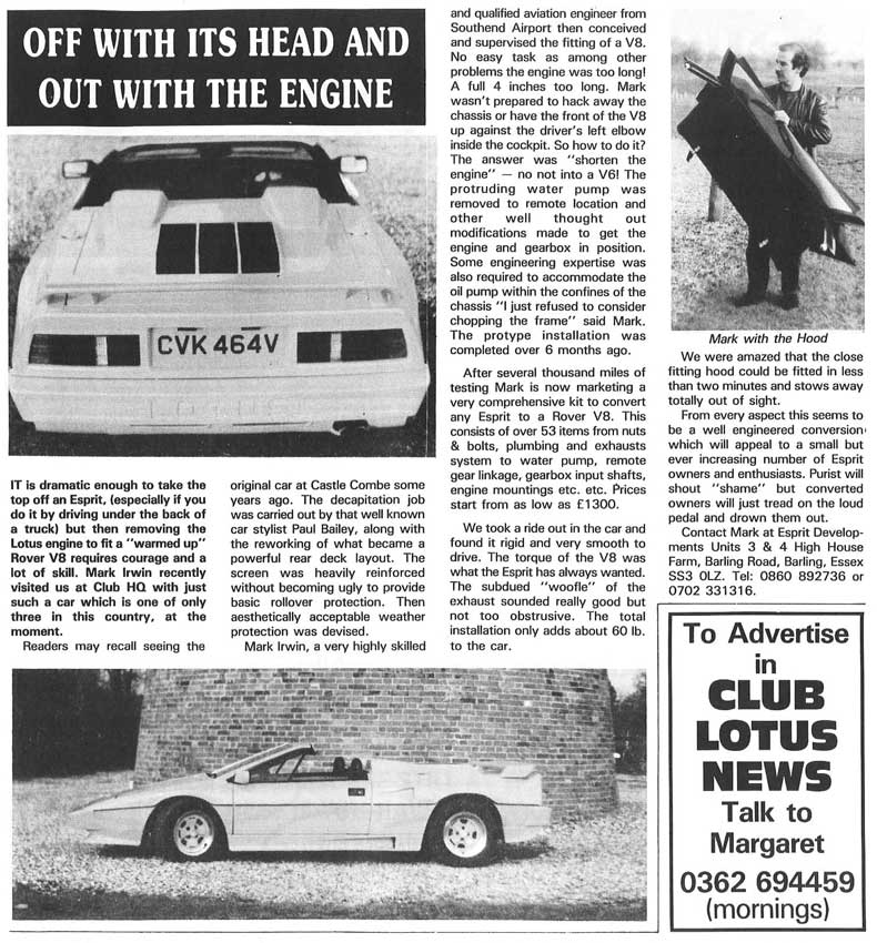 Thanks to ClubLotus for allowing us to publish their article. If you have any comments to add to this page. Feel free to e-mail at admin@lotusespritworld.com.
