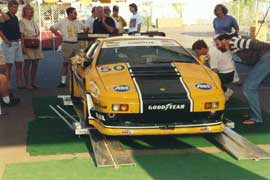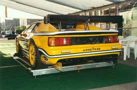 The car was based on a body tub that "looked" production, but it sure looked thinner that I recall being stock. Doors and hatches were tissue paper thin and wobbly when open. It had a full ground effects belly pan designed by Team Lotus personnel and wind tunnel tested. They had to raise the ride height for the street race... some of the pavement wasn't smooth enough to allow for the optimally low height the ground effects liked. But it still worked and you could see the car suck down as it picked up speed on the straight. Buy about the halfway point on the straight, the car was starting to scrape on the pavement.