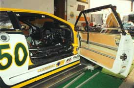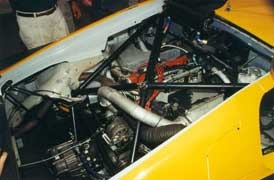 The stock-looking chassis was in there, but integrated into a cage that added structure. The firewall was fabricated and all internal panels aft of the bulkhead were race-fabbed. Huge rubber on centerlock wheels (one large retaining nut like most modern race cars). The engine was still 2.2 liters, and was running about 440 Hp in race trim. They were working on a 2.4 liter version and hoped to have it ready for the race at Road America (Elkhart Lake) in a few weeks. I never heard if they ever raced it.