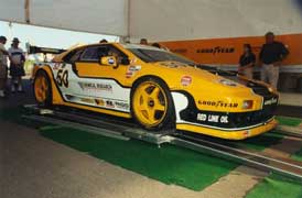The Esprit was impressive in the race and traded places with the Panoz LMP coupe (Batmobile) and Mosler Conselier (sp ?). Late in the race, Doc was in second behind the Mosler. He was charging and reeling the Mosler in when his tires started going off. The Esprit had the pace to overtake the Mosler, but he had fried the tires and had to back off to preserve the rubber for a final sprint. In the closing laps he picked up the pace again and was closing on the Mosler very well when the tires started fading once more. He couldn't make one corner and had to take the escape road. There were only a couple of laps left, so by the time he got back on course there wasn't enough time (or tires) to catch the Mosler again. Doc finished second, but it was an exciting run.