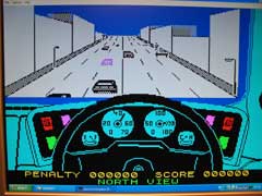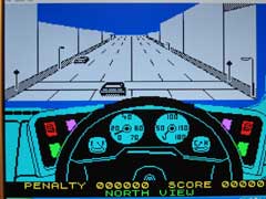 The only real clue that its an Esprit based game (apart from the tiny car on screen) is the dash, which someone has obviously paid a lot of attention to. The speedo shows 180mph, but car will only reach the quoted top speed of 150mph, revs go to 6500rpm. As befitting a Lotus, there are garages you can stop at for repairs on route, Did the programmer know something about Esprits or what?