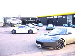 Put into Group 5 fo 9 with 10 people in our group, we test drove the Evora first. 6 Evora's were lined up with 6 Lotus employees. The test drive was out on the public roads. A quick blast out of the factory and down to the A11 and back. We're not going to do a big review of the Evora, but lets just say after 15 mins at the wheel of an Evora with only 90 miles on the clock, you can get a good feel for it. Cross an Elise with a 911 and that's what an Evora's like to drive, pretty much where it's aimed at. Time will tell if it's a success.