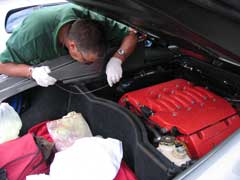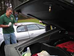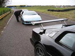 Dave Walter's V8 needed a bit of assistance on arrival. The O2 Sensor had blown off. Luckily the knowledge and tools in the carpark were there to help out. A European Esprit also needed a little clutch fluid to help out the gearchange. The Esprit community working as one!