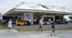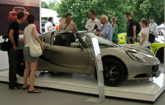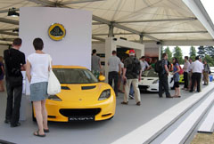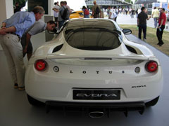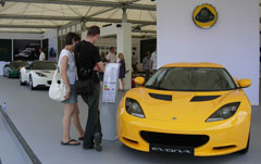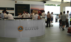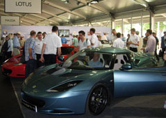 Getting through the gate, we first encountered the Paddock – an enclosed area where each of the major manufacturers had their own space. The Lotus area allowed potential customers to get up close and personal with the Evora. A couple of very nice Ardent Red, a metallic blue and a silver coloured car were being used to take people out on the Festival of Speed track. I’m sure there were more than a few converts.