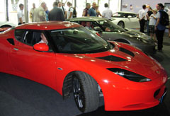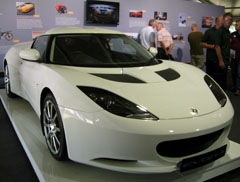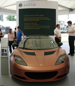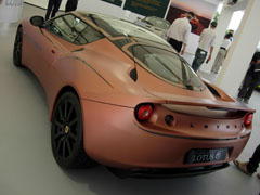 The Lotus stand looked crisp, clean and nicely laid out with examples of the Elise, Exige and several stunning versions of the Evora on display. One of the more interesting displays was the copper coloured Evora 414E Hybrid , a high performance technology demonstrator with a plug-in series hybrid drive system and new technologies for enhanced driver involvement. This vehicle is capable of 0-60mph in under 4 seconds with a hybrid range of 300 miles. Most fascinating was the Lotus Range Extender engine, a 1.2 litre 3 cylinder block capable of 400 bhp (that’s what I was told, folks).