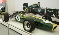 A blast from the past was Jim Clark’s fully restored Type 49 single seater race car in Team Lotus livery, right next to a graphic of the modern Lotus Racing Formula 1 car.