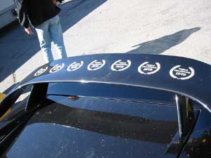 I also wanted to commemorate the racing history of Lotus so I had some laural wreath decals made by the guys who used to signwrite all the race cars (and still do). There are seven decals, one for each constructors championship, across the rear wing.