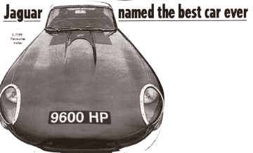 I've added this article to Lotus Esprit World from today's (29th Jan 2004) Daily Mirror as for one it lists the Lotus Esprit as top car for 1976, which of course was it launch year and was still in peoples minds from the James Bond film 'The Spy Who Loved Me'. The other reason is the comparison with the Jaguar E-Type. Read the article and it give the production figure for E-Type's as 72,000 over it's 13 year production run. The Esprit will have had a production run of 28 years once it finishes this year (over double that of the E-Type) and Lotus will have made only 11,000 examples. And you though E-Types were rare!