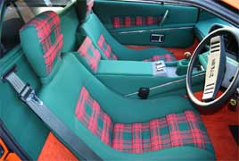 The Delorean back to former Glory2006 and 07 has seen a surge in Esprit S1 owners wanting to re-trim their cars in the original materials. Wyn Edwards has been having a complete “chassis up” restoration carried out over the last few years and his car finally came to us late in 2006. We fitted new 1⁄2” felt, new original orange carpet, original tartan cloth and new green cloth made to the original specifications, thanks Wyn for your help.