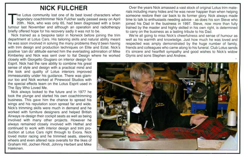 N. Fulcher Coachtrimmer • 50A New Road, Hethersett, Norwich, Norfolk NR9 3HH • Tel/Fax: 01603 811993 • www.coachtrimmer.co.uk