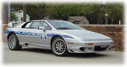 This car is not a mock-up or a joke, but for a fallen officer whom cared about her service and love of Lotus. It is a complete working Police car; with all the radios, guns, and other stuff (Radar, etc) on the inside.