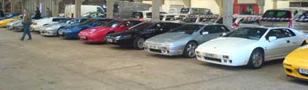 Paul had arranged with Club Lotus space for 'Esprit Only Parking' inside with all the parking attendance making sure Esprits were all parked up in Bay 5. As you can see from the pictures it work really well. Must have been between 30-40 Esprits lined up!