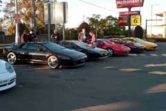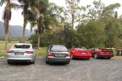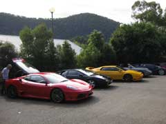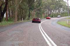 One of the boys would find or know a good route and lead the drive. Usually out in the country/outskirts of Sydney. So far our drive is centred around the Central Coast which is an hour's drive north of Sydney and has beautiful scenery and windy roads of course! We have also made a run up the mountain to Katoomba which is an hour west of Sydney and a popular tourist destination and windy roads too. I had mounted a camera in my Esprit on a run up the mountain and posted on YouTube: http://www.youtube.com/watch?v=oIfFR5LEOhI