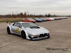 The LEW Grid with badges and the logos top left and bottom right. Beautiful! Some racing Esprit speed up the day!