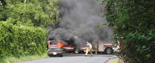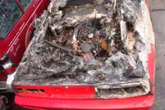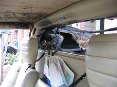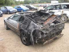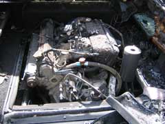 I immediately called the fire brigade and police (as the smoke from the fire was a severe hazard to other road users). They both arrived within minutes, however, the fire brigade was unable to control the fire, no doubt not helped by the fact that I had filled the car with fuel about 20 miles before.