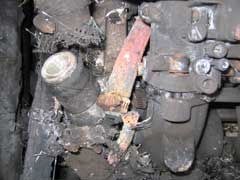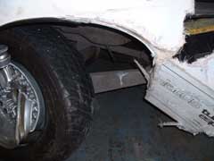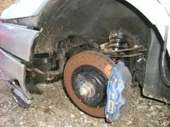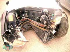 Front damage, apart from the bodywork and foglights, will mean new radiators, water and oil, plus pipework. Rear wheel completely severered, including the drive shaft which was pulled out of the gearbox, plus suspension of course - I found the rear spring 30 yards up the road. Drivers side no damage at all and the steering worked fine when it was dragged onto the breakdown truck.