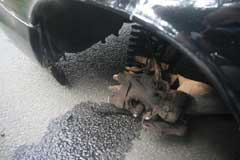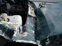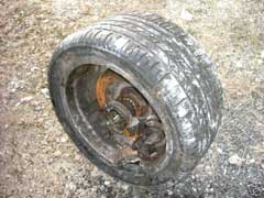 I cannot say the same for my Esprit, which had extensive front end damage - enough to have the insurance company total out the car. I was never able to fully determine what caused the tire to blow out, but in the picture of the suspect Michelin Sport Pilot, you can see that the whole inside sidewall has disintegrated. I am sure nothing in the wheel well was touching the tire, and I had just topped off the air pressure on all of the tires that morning to 35 p.s.i. since I knew we were going to be taking a 250+ mile trip in the car..