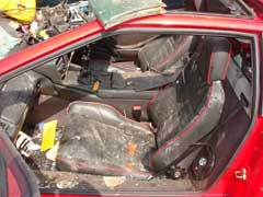 The interior is undamaged as you'd expect from this type of collision. We only hope it's not getting worse by being kept outside in a junk yard somewhere. Especially as the sunroof seems to be missing!