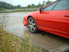 Neal McDonnell's 1998 V8-GT took a bashing into an Armco recently. As you can see from the pictures, it looks a little damp on the road, but this is now the third Esprit damaged in this way. LEW has also heard of an experienced S1 driver who lost it on a dry slip road.