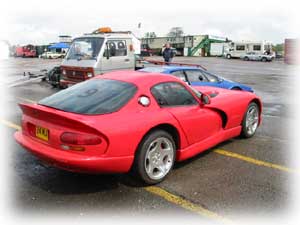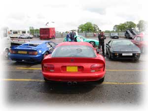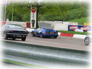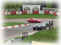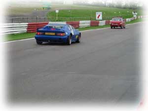 The Esprit out of the Hairpin and the Viper coming down the finishing straight. The Viper managed 110mph down the home straight and 105mph down the back straight. The Esprit match the straight line speed, but mainly due to coming out of the corners a little faster.