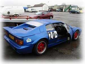 The weather couldn't have been much worse, with constant rain! But there were still plenty of cars out on the track. The session were broken up into 3 different categories. Race Prepared, Road & pre 1960's Race and Passenger. The Esprit was passed for all three, so it saw plenty of action, with both John & daughter Liz pushing it in the wet! I won't mention that John spun and bashed up the bumper a bit, whereas Liz caused no damage to the Esprit.