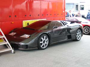After paying 80p for a can of coke and £3.50 for a cheese burger (bring a packed lunch). We hit the paddock Ferrari seemed to have all the money (but can they win a race), an EB110 with full carbon fibre body panels was found hiding in the Ferrari Tent. One of the Team Owners cars, now you don't find many of those. They're rare enough, but a carbon fibre version, my monies on it being the only one in the world.