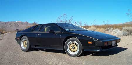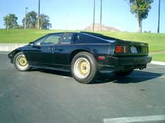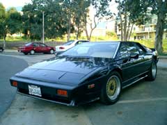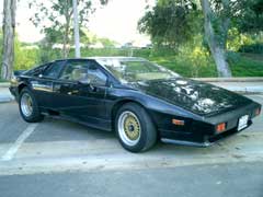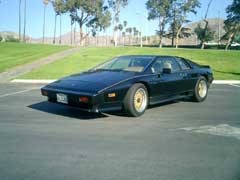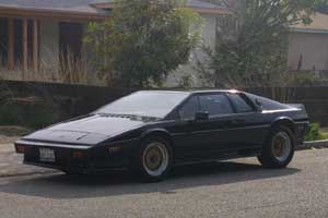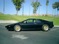 Turbo Esprit Year: 1986 Colour: Black Interior: natural leather interior Driving Style: Fast Miles per year: 10,000+ Owned Since: Jan 2003 Purchase from: Private Sale Serviced at: Viking Motorsports in Costa Mesa, California Other Cars: 1955 Chevrolet Previous Lotus': None Why an Esprit: I had always wanted one of these, but figured I could never afford one. I had plans for a modified 55 Chevrolet that had been in my family since I was 5, to modify it with modern drivetrain suspension etc., until I found out it would be better (cheaper) to buy a new car already equipped with such things, that would probably turn out better anyway. So I looked at Nissan 300zx twin turbo, Nissan Silvia turbo, Mitsubishi 3000vr4, and Toyota MR2 turbos, I figured a Lotus would be too much for me, and didn't bother checking them out until I found my 86 Turbo. I had only seen a handful of Lotuses at this point, I asked enough people and read enough books that I considered myself enlightened enough to finally buy it. I'm glad I did. Upgrades: Upgraded to larger water cooled turbo. Metal Clutch line. Momo steering wheel, Nakamichi stereo. Problems: The headlight switch melted itself together, cost only $40 to replace (JAE motorsport) and I did the work. Car died at stoplights, about a week after I got it, I checked the electrical grounds and it has stopped doing that. The windsheild washer switch exploded one day (unprovoked) I was able to reassemble the pieces, which were scattered about the floor of the car.